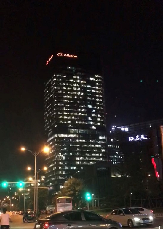 晚上的阿里巴巴北京中心,仍然燈火通明。